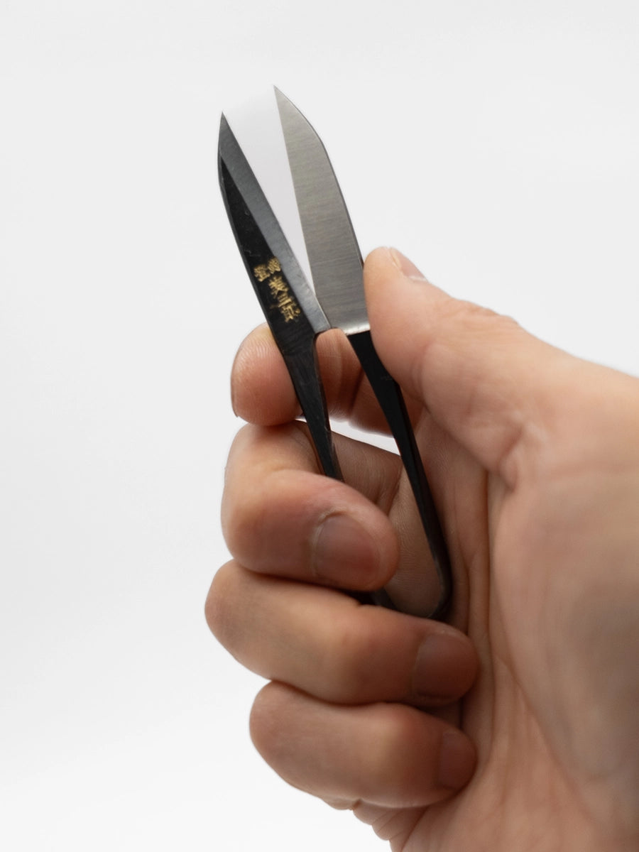 Contrairement aux ciseaux occidentaux, les nigiri basami se tiennent dans la paume sans passer les doigts dans les anneaux. La lame agit comme un ressort, s’ouvre naturellement, et offre une grande précision et maniabilité, idéale pour les travaux délicats.