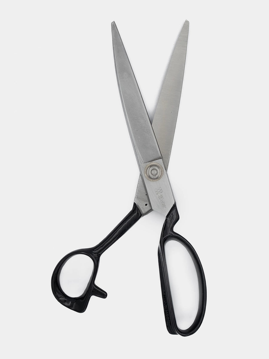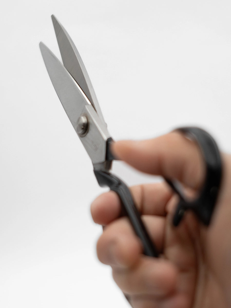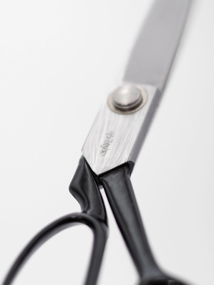 Ce sont des ciseaux de couture forgés à la main de 260 mm. Fabriqués en acier traditionnel japonais, Yasuki Shirogami (l’acier Yasuki White Paper), ils conservent leur tranchant durablement. Contrairement à l’acier inoxydable, cet acier peut rouiller, mais il offre une accroche incomparable sur le tissu, permettant de savourer la coupe précise finement aiguisée à la main par un artisan.