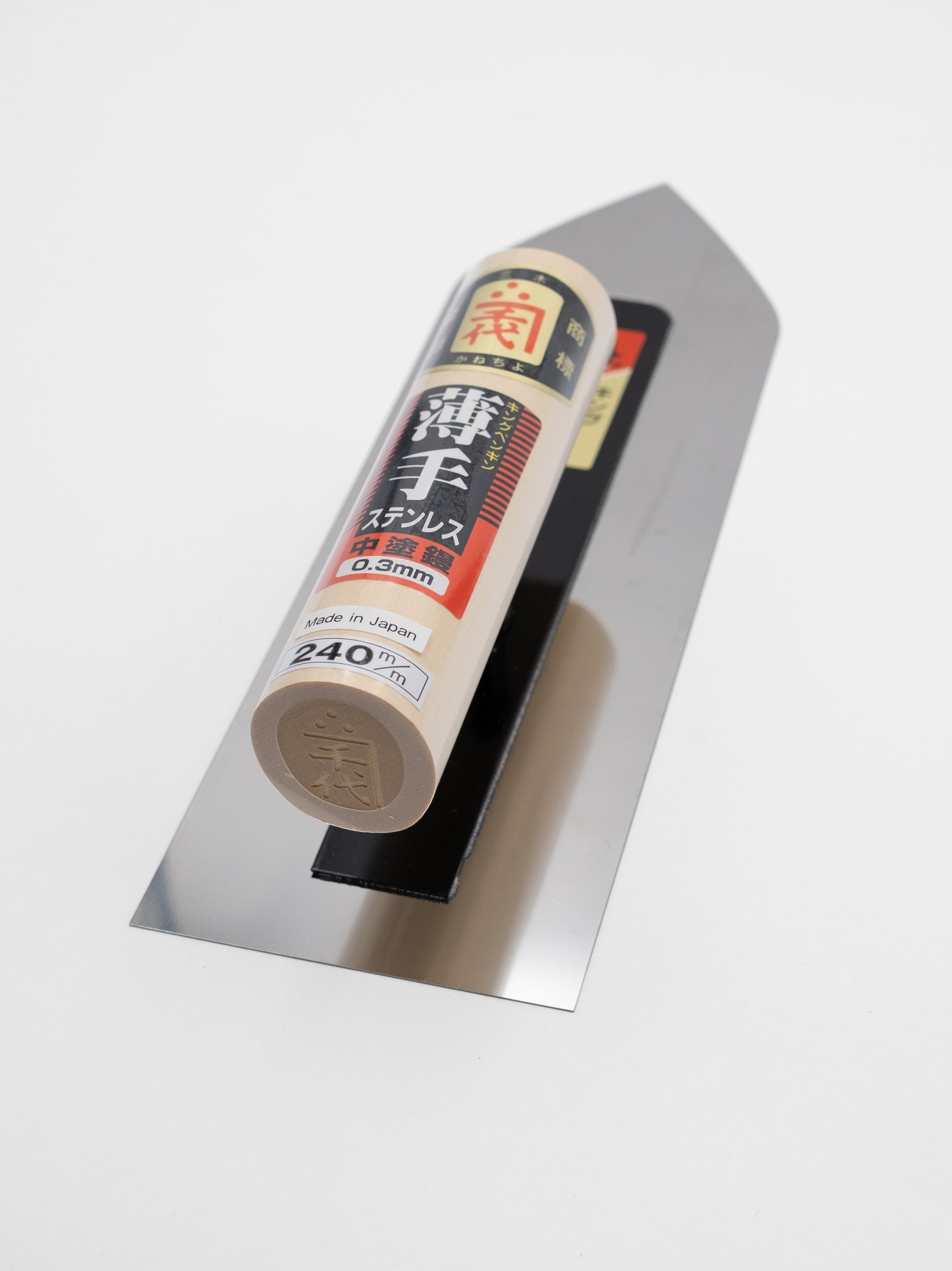Cette Nakanuri(intermédiaire) Truelle est utilisée entre la couche de base et la couche de finition lors des travaux de plâtrage sur murs ou sols. Elle permet de lisser et d’uniformiser l’épaisseur de la couche. Polyvalente, elle convient aussi très bien comme premier outil.
