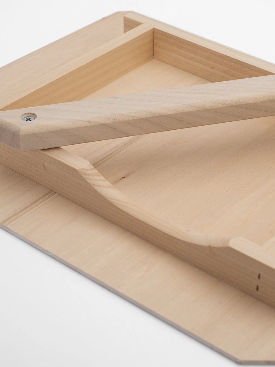 La planche à truelle japonaise, appelée koteita, est un outil traditionnel utilisé pour transporter temporairement du mortier ou de l’enduit lors des travaux de plâtrerie. Fabriquée en bois léger, elle se tient facilement dans la main gauche pendant que la main droite utilise la truelle. Elle permet de doser et ajuster la matière directement sur la planche, offrant un travail fluide, précis et sans gaspillage. Son format compact est idéal pour les finitions délicates.
