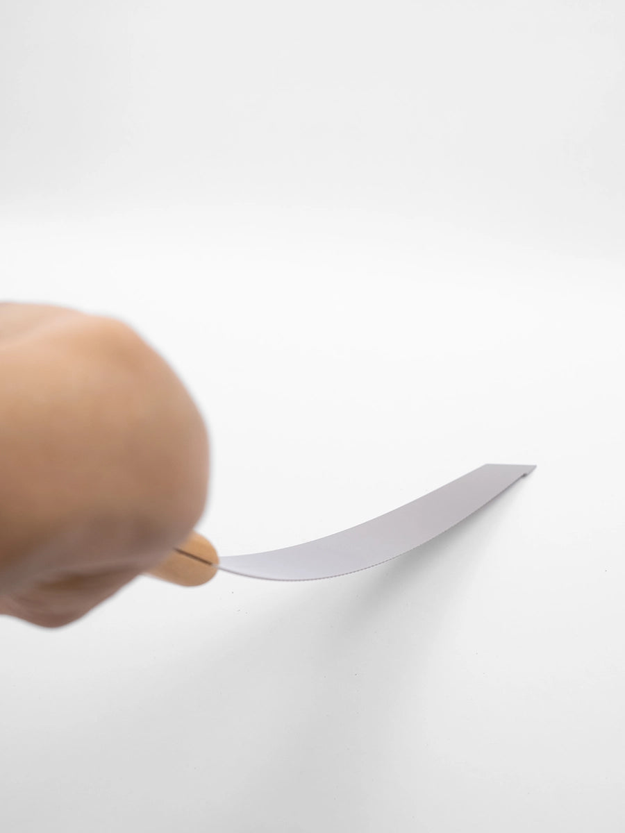 Sa lame en acier à ressort, souple et résistante, durcie par *trempe par impact, s’insère sans effort le long des parois des pots. Elle coupe racines et terre en même temps, s’adapte à toutes tailles de contenants et évite les échecs de rempotage.