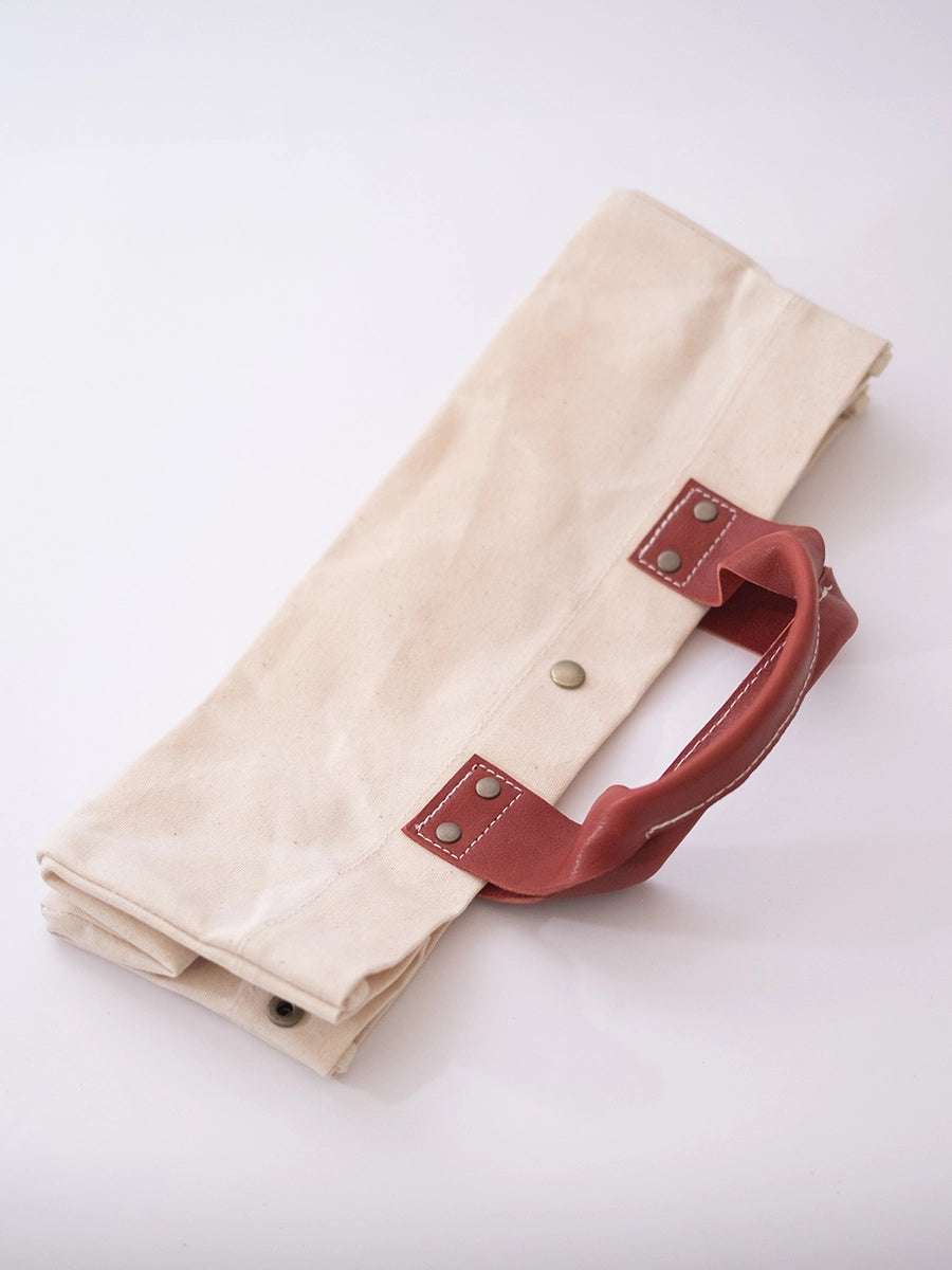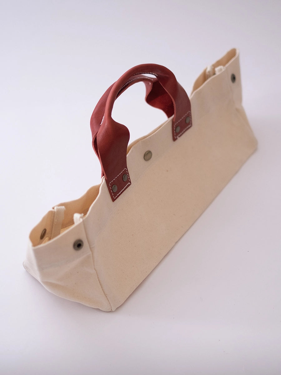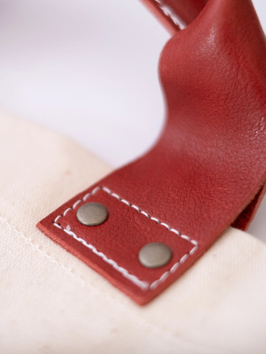 Les poignées sont en cuir de Tochigi, souple et durable, qui se patine joliment avec le temps et reste confortable même lorsque le sac est chargé.